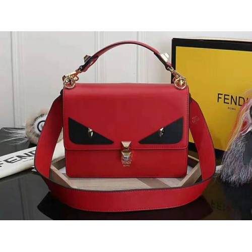• Черна кожена чанта Fendi Kan I, червена f5533