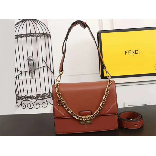 Чанта от телешка кожа Fendi Kan I, кафява