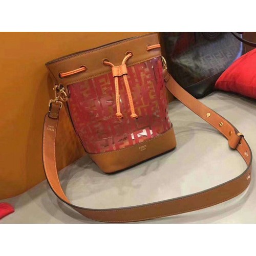 Чанта Fendi Mon Tresor с прозрачна кофа от кожа, оранжева f0811