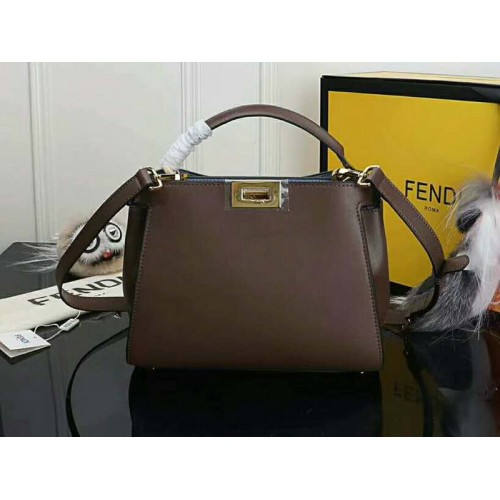 Чанта от телешка кожа Fendi Peekaboo Essential, тъмнокафява