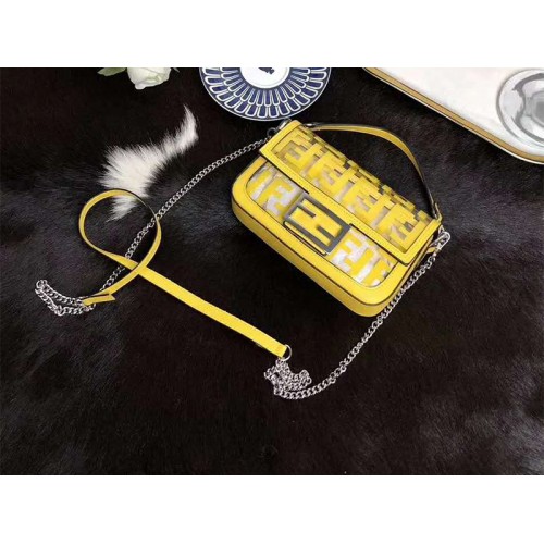 Малка чанта Fendi Baguette в жълто от изкуствена кожа