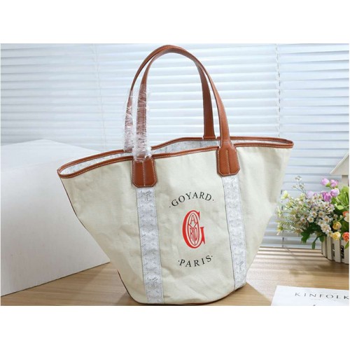 Ограничено издание. От магазин Maison Goyard Biarritz за 2017 г. Платно с покритие от слонова кост и многоцветно ръчно рисувано гоярдинско покритие Goyard Belharra Biarritz тоте с канелена кожа и контрастни шевове, двойни плоски презрамки, реверсивен интериор от кремообразно платно с акцент ‘Biarritz’ отпред и отворен отгоре. Пазарувайте дамски чанти Goyard и ги съберете всички.