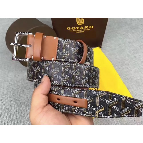 Кожен колан Goyard Chevron Goyardine черен с кафява кожена тапицерия