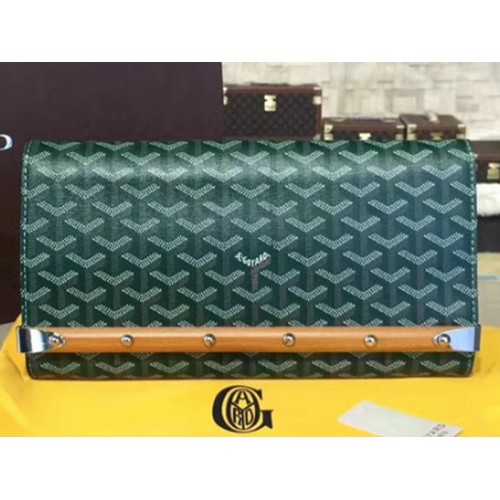 Goyard Chevron Monte Carlo Bois Clutch Green