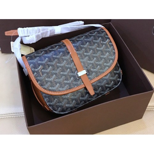 Чанта през рамо Goyard Goyardine Chevron, черна с кафява кожена тапицерия