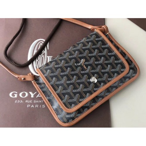 Портфейл Goyard Goyardine Plumet Crossbody, черен с кафява кожена тапицерия