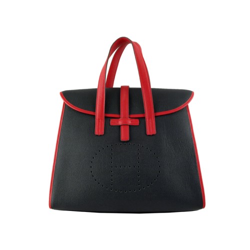 Hermes 08c чанта с клапа черно с червена кожена тапицерия