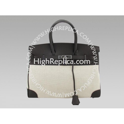 Хермес Бъркин 35 см чанта Toile и Того кожа Choco