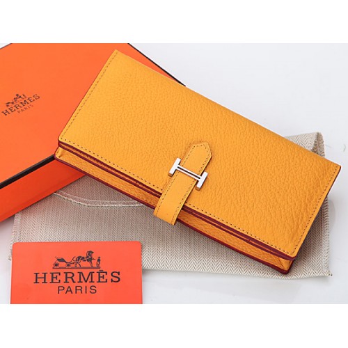 Hermes Dogon Togo Оригинален телешки Bearn Japonaise Bi-Fold Портфейл Жълт