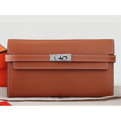 Hermes Epsom оригинален телешки Kelly дълъг портфейл камила