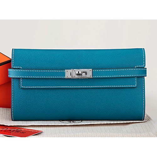 Hermes Epsom оригинален телешки Kelly дълъг портфейл средно син