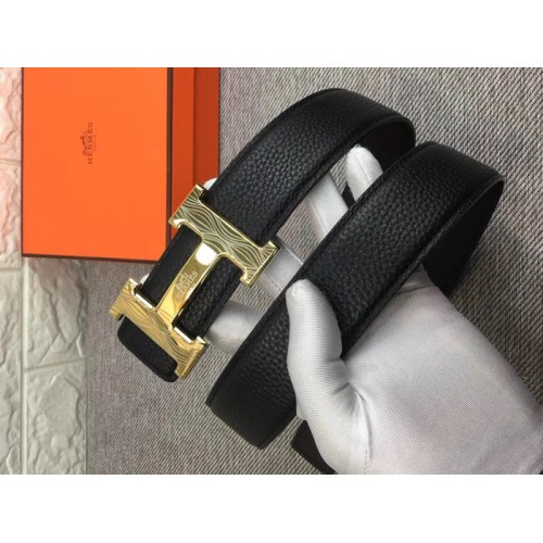 Hermes Shiny Gold H колан с катарама и обратима кожена каишка черно
