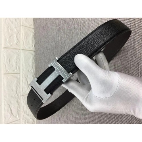 Hermes Silver H колан с катарама и обратима кожена каишка черно