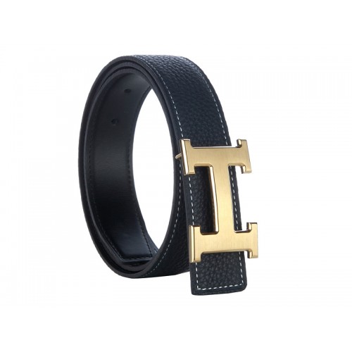 Кожен колан Hermes Togo със златна катарама H черен