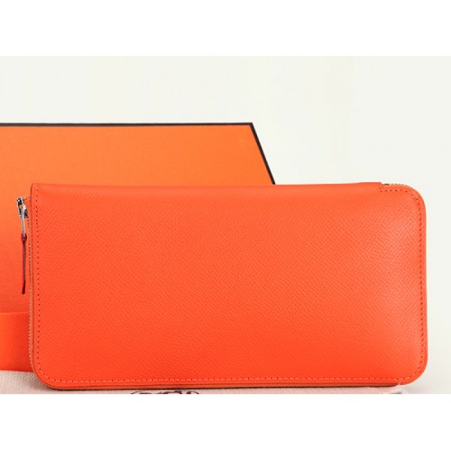 Hermes Zipper Портфейл Оригинал Epsom Телешка Кожа Orange