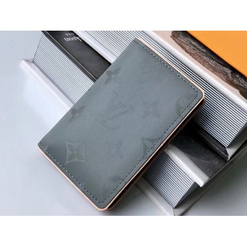 Въведено в Louis Vuitton’s Есен-Зима 2018-19 men’s модно ревю, сив монограм Титаново платно е вдъхновено от завладяването на космоса. Тук той присъства в специално издание на Pocket Organizer, изключително компактен портфейл, който все още съдържа различни джобове и слотове за кредитни карти.