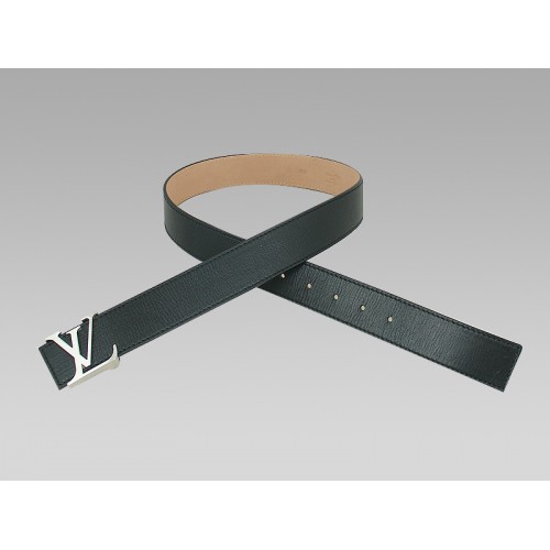 Луи Вютон Инициали Черен кожен колан със сребърна катарама