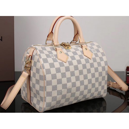 Без усилие стилен, независимо дали се носи по тялото, на рамото или на ръка, Speedy Bandoulière 25 е олицетворение на вечния дизайн. Свежо, еластично платно Damier Azur добавя към своята привлекателност.