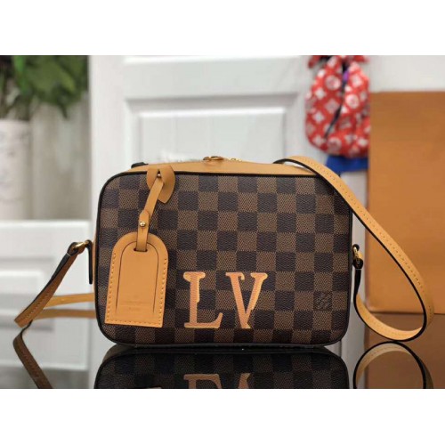 Платното платно Damier ebene и гладката телешка кожа се комбинират в Saintonge, компактна чанта с младежко настроение. Кожата придава контраст и обем на дизайна. Със своята горна дръжка и дълга каишка чантата може да бъде оформена по различни начини.