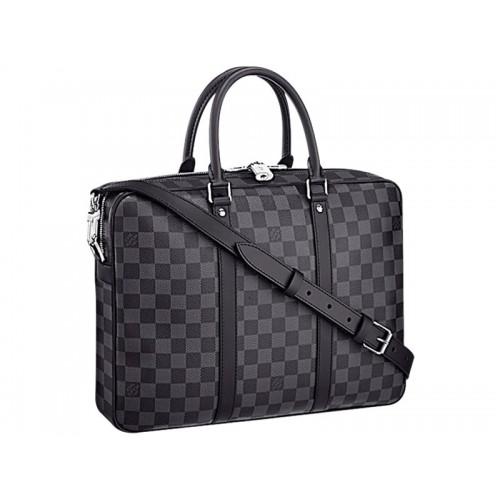 Пътешествието Porte-Documents PM изглежда безпроблемно стилно в мъжко графитно платно Damier. С гладки кожени гарнитури и просторен интериор съчетава лукс и практичност.