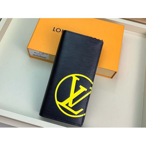 Кожен портфейл Louis Vuitton Epi Brazza черен с жълти инициали m67910