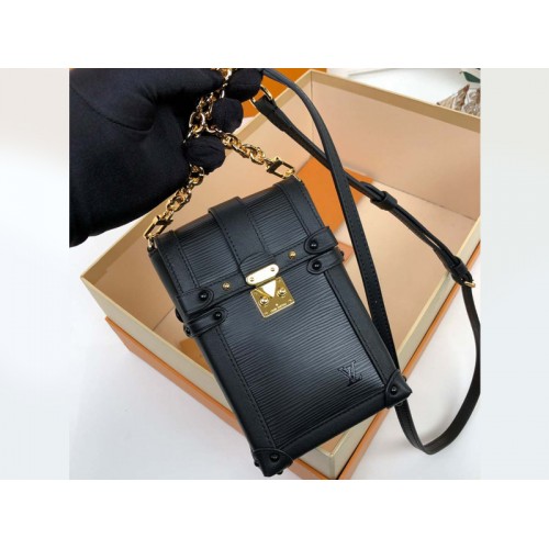 Портфейлът с верига Trunk от кожа Epi е вдъхновен от емблематичния съединител Trunk, проектиран от Nicolas Ghesquière. Този изящно изработен дизайн включва детайли, адаптирани от историческите стволове, включително метални шипове, закопчалка с S-образна ключалка и подплата с модел Malletage. Благодарение на подвижната си верижка, може да се носи като съединител или чанта през рамо.