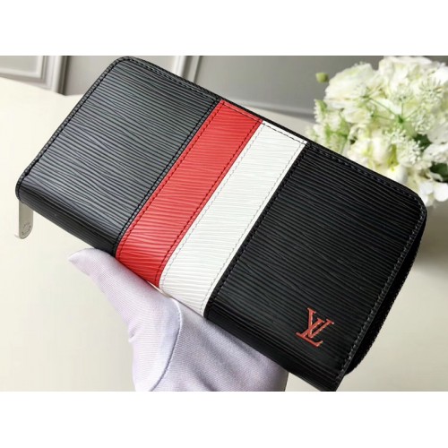 Като част от специалното издание на Epi Stripes, портфейлът Zippy от черна кожа Epi е преосмислен с графична червена и бяла ивица, вдъхновена от Louis Vuitton’ традиция за персонализиране на своите клиенти’ куфари и чанти. Всеки цвят се зашива отделно. Този емблематичен портфейл разполага с множество джобове и отделения в сигурен формат с цип.