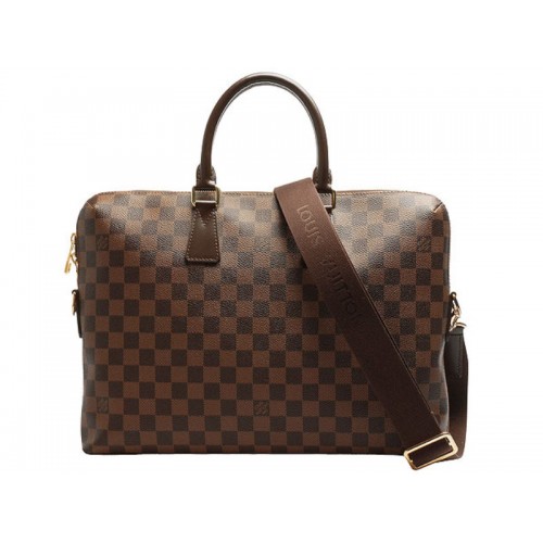 Пътешествието Porte-Documents при арестуването на платното Damier Ebene е по-компактна и непринудена версия на Porte-Documents Voyage. И все пак лесно носи 15” лаптоп във фин стил.