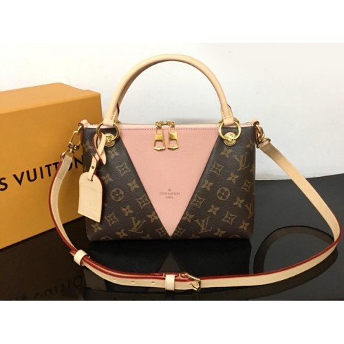 Вдъхновен от "V" на Vuitton, дамската чанта V Tote е изработена от монограмно платно с голям триъгълен панел от зърнеста кожа. Той е допълнен със златен обков и кожен етикет и може да се носи като дамска чанта или през рамо благодарение на подвижната си каишка.
