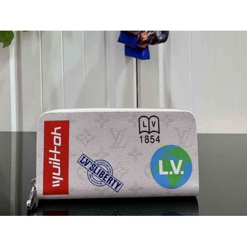 Практичният организатор Zippy демонстрира привличащ вниманието дизайн, смесвайки емблематични мотиви на Louis Vuitton с цветни графични елементи. Удебелените лога са поставени на фона на класическия модел на монограма, придавайки на този портфейл градска естетика. Просторният интериор има множество слотове за карти и отделения с цип, които могат лесно да поберат банкноти, карти за съхранение и монети.