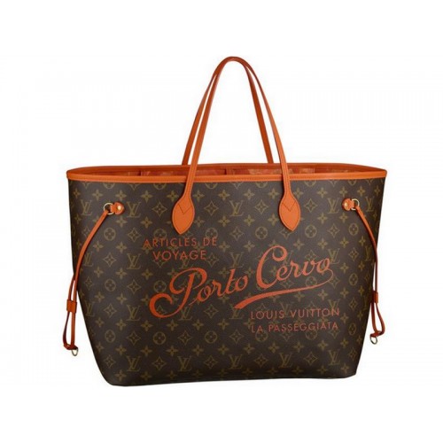 Улавяне на духа на лятото.Louis Vuitton интерпретира отново своя емблематичен neverfull в знак на почит към най-известните курорти в света Porto Cervo.vintage - стил с надписи.оранжева кожена облицовка и флорална подплата с щампа Ikat добавят към привлекателността на този лимитиран тираж holdall, чиито практични характеристики и щедри пропорции го правят перфектният избор както на град, така и на плаж .