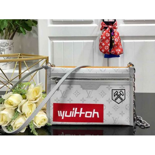 Създадена от две отделни торбички с цип, съвременната плоска чанта е функционално парче. Може да се носи на рамото или на кръста благодарение на елегантната каишка. Кука, вдъхновена от карабинер отстрани, позволява двете торбички да бъдат съединени заедно или всяка може да се носи като отделен портфейл. Целият модел на монограма осигурява изискано покритие.