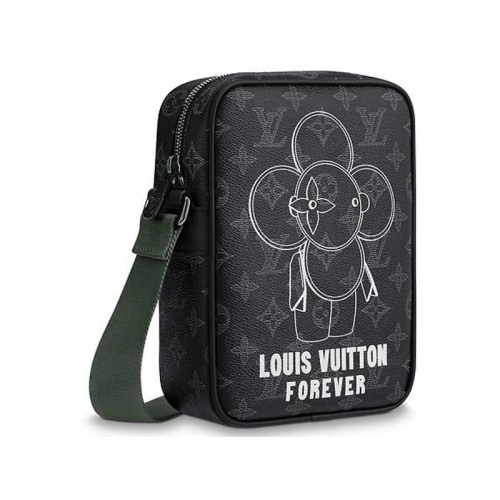 Този компактен Danube PM, изработен от платно Monogram Eclipse, включва нова версия на Vivienne, талисмана Louis Vuitton, нарисуван от Ким Джоунс специално за Men’s 2018 Fall Precollection. Елегантна градска чанта с акцент от черен и зелен обков, Дунав е оборудвана с регулируема текстилна каишка за носене през рамо или през тяло.