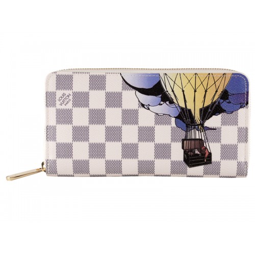 Този Louis Vuitton Damier Azur Canvas Zippy Illustre Nostalgic Advertising Clip Zipper Long