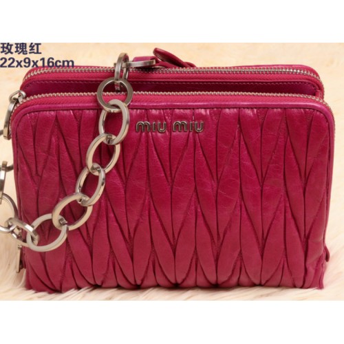 Кожена мини чанта през рамо Miu Miu Glazed Matelasse в ярко розово