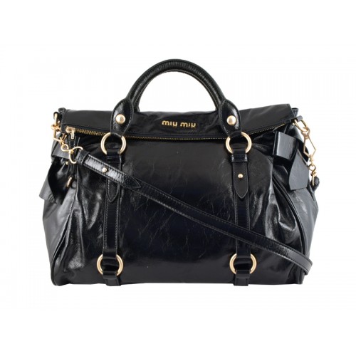 Miu Miu лъскава кожена голяма чанта Boston черна
