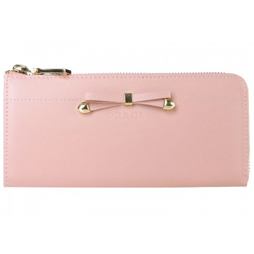 Портфейл Prada Saffiano с цип и панделка в розово