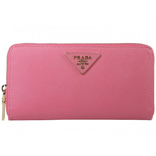 Портфейл Prada Saffiano Zippy с триъгълно лого в розово