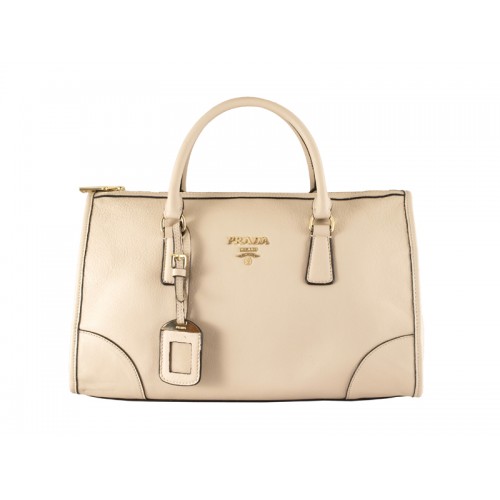 Чанта от телешка кожа с горна дръжка Prada, бяла
