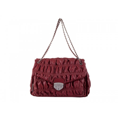 Чанта за през рамо от релефна кожа напа, цвят вино Prada