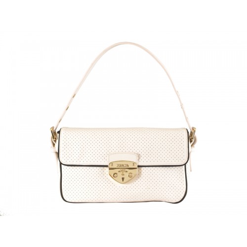 Чанта през рамо от перфорирана телешка кожа Prada, бяла