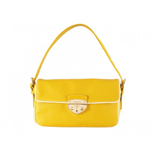Чанта през рамо от перфорирана телешка кожа Prada, жълта