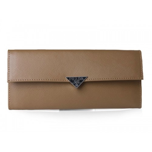 Портфейл Prada Saffiano от телешка кожа с двойни прегъвания, цвят каки