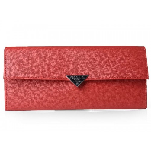 Портфейл Prada Saffiano от телешка кожа с двойни прегъвания в оранжево