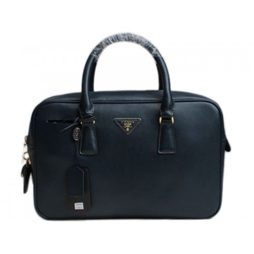 Чанта от телешка кожа Prada Saffiano с горна дръжка в тъмносиньо