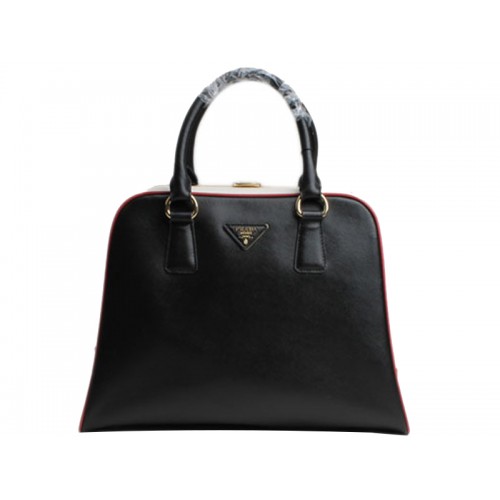 Чанта Prada Saffiano с рамка отгоре и дръжка черна