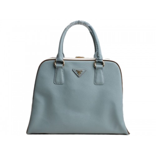 Чанта Prada Saffiano с рамка отгоре и дръжка в синьо