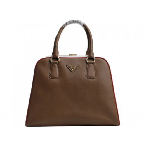 Чанта Prada Saffiano с рамка отгоре, цвят кафе