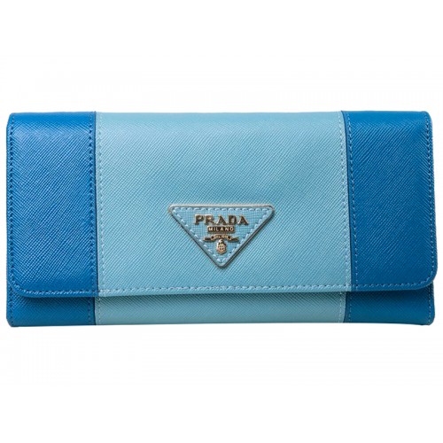 Кожен портфейл Prada Saffiano Tri-Fold, син със светлосиньо