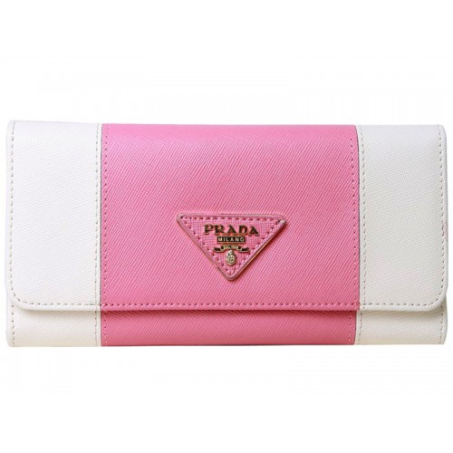 Кожен портфейл Prada Saffiano Tri-Fold, бял с розово